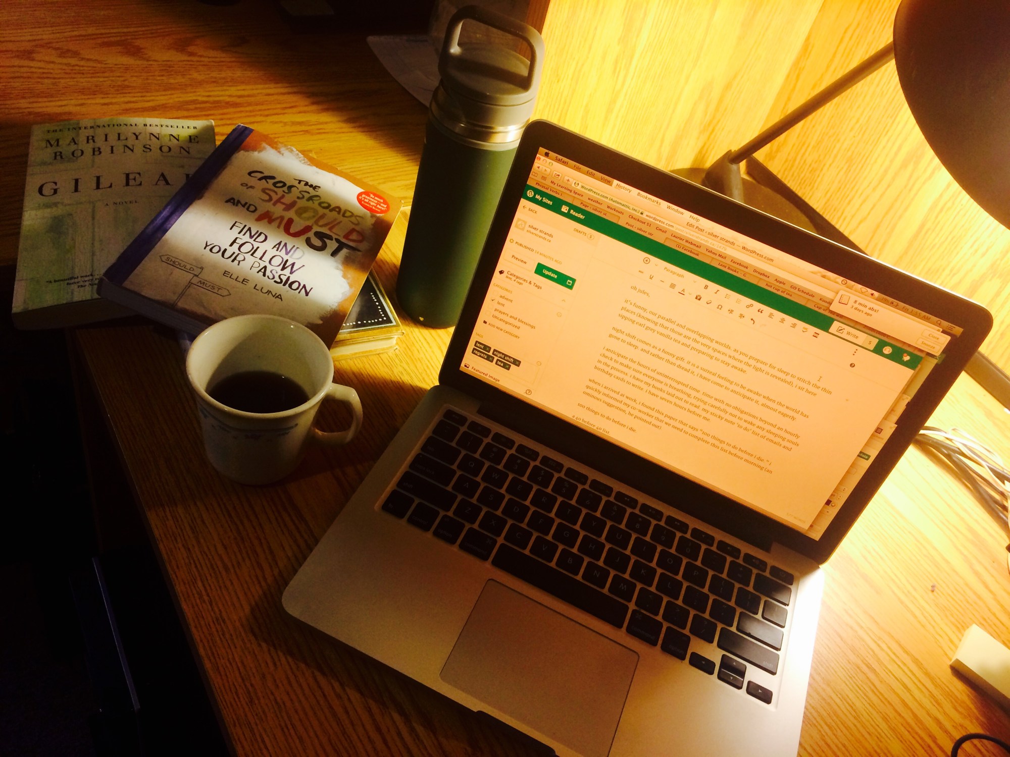 i anticipate the hours of uninterrupted time. time with no obligations beyond an hourly check to make sure everyone is breathing, trying carefully not to wake any sleeping souls in the process. i have my books laid out to read. my sticky note ‘to do’ list of emails and birthday cards to write. i have seven hours before me.