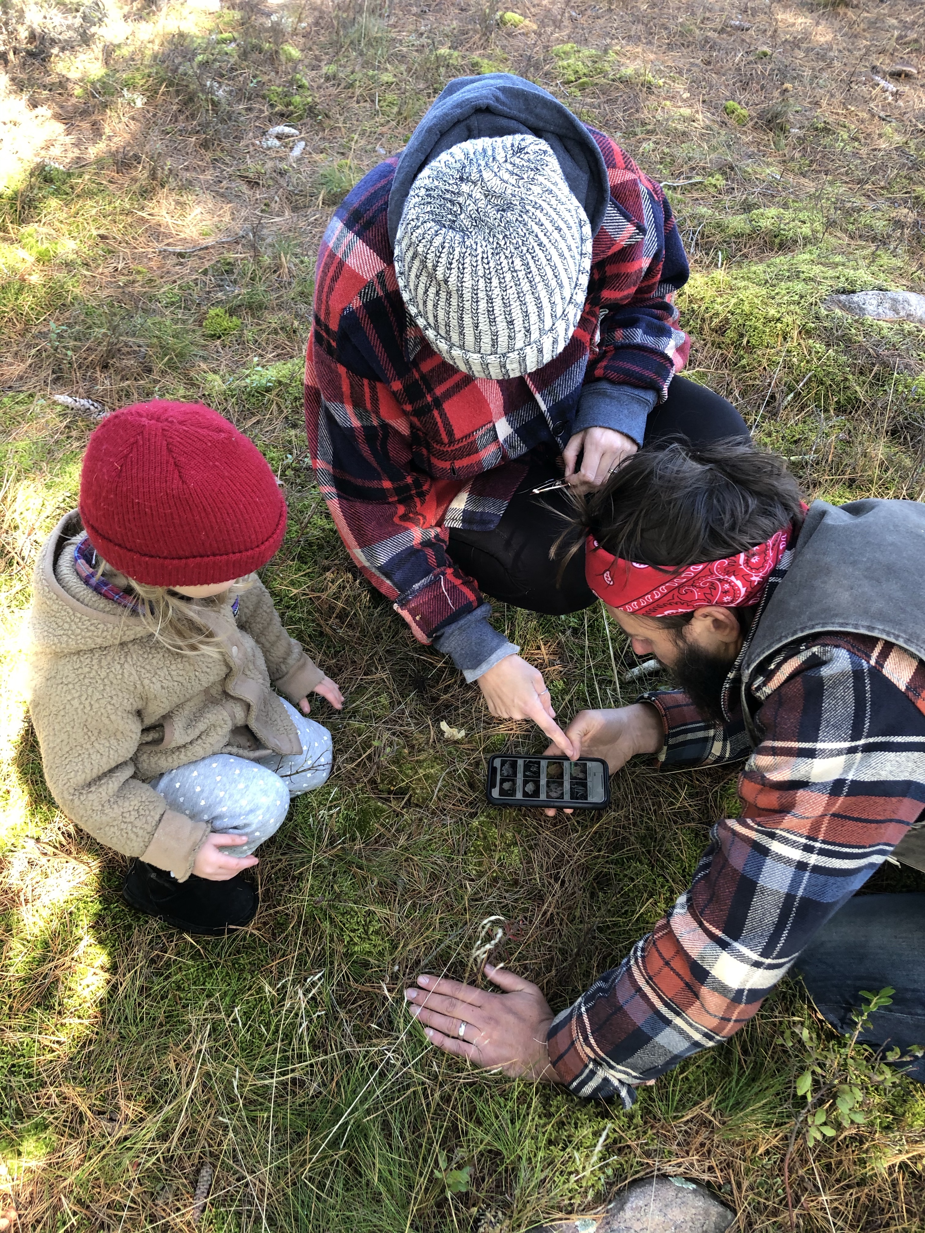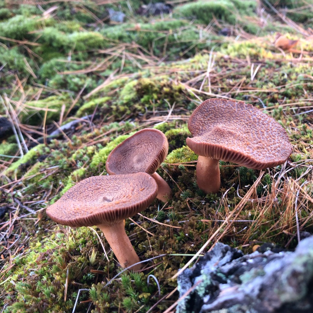 mushrooms tucked into pine needle beds